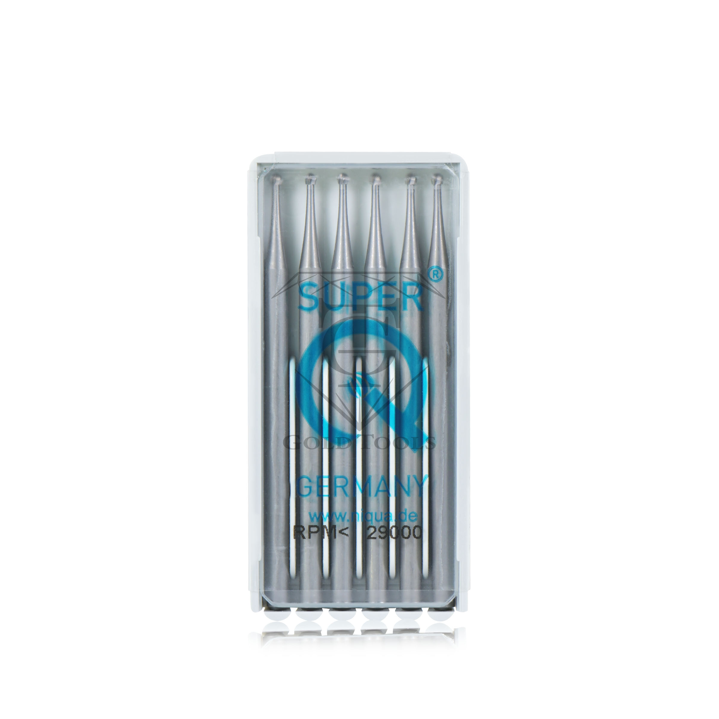 Ce jeu de six outils Super Q est conçu pour réaliser des finitions fines et détaillées sur des bijoux en or. Les outils sont fabriqués en Allemagne, et chaque outil permet des travaux de précision à une vitesse maximale de 29 000 tours par minute, assurant des performances exceptionnelles.